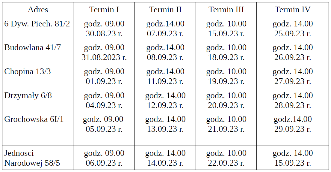 Harmonogram okazywania lokali za remont Wrzesień 2023 r.